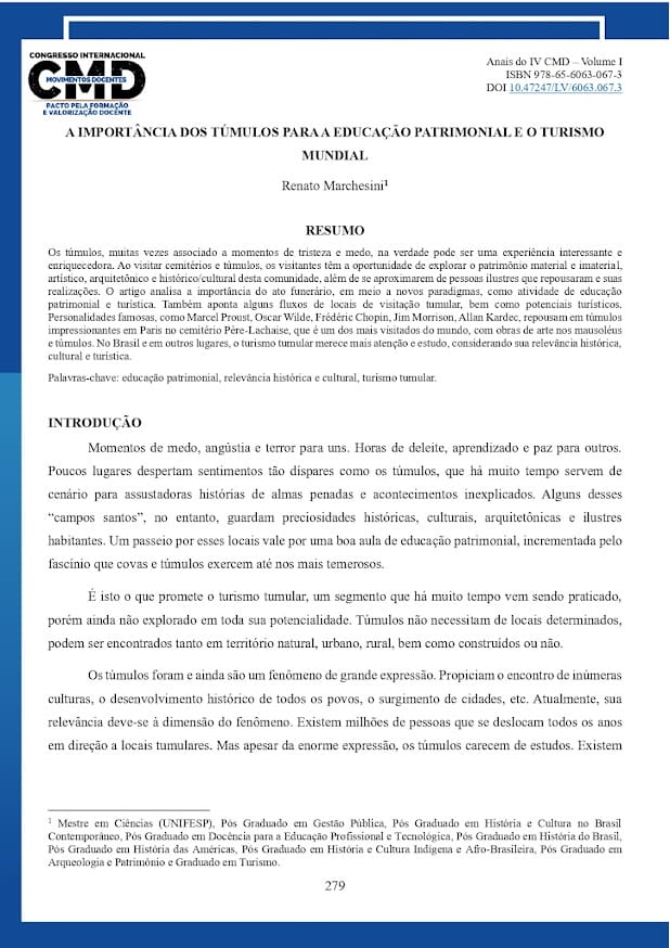 MARCHESINI, Renato. A Importância dos Túmulos para a Educação Patrimonial e o Turismo Mundial. In: Congresso Internacional Movimentos Docentes, 2024,