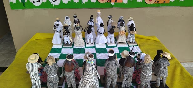 Mas na escola quilombola em que Gisele é professora a ideia da inserção do jogo foi além da Matemática e da Educação Física, pois faz parte de um projeto para atender identitariamente os alunos e a comunidade. “As mudanças do nome das peças tradicionais foi com o objetivo das pessoas aprenderem brincando e enriquecer a hierarquia de cada membro do quilombo”, afirmou Gisele.
