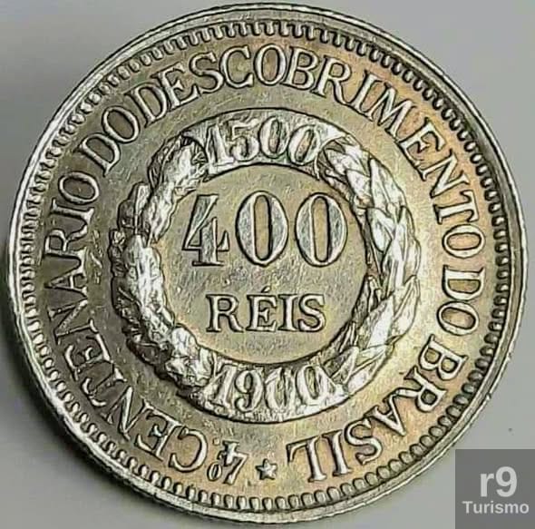 • Reverso: O valor facial “400 RÉIS” dentro de uma coroa de louros, com as datas 1500 (descobrimento) e 1900 (centenário).