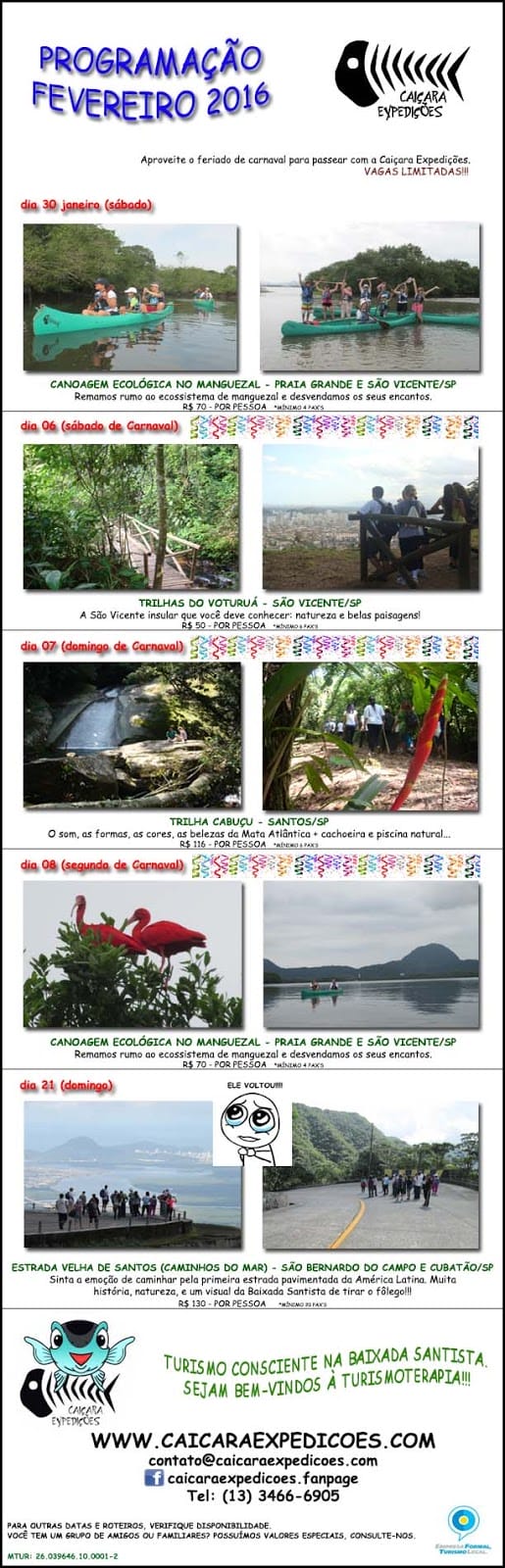 Programação Turismo na Natureza da Baixada Santista – FEVEREIRO + CARNAVAL 2016
