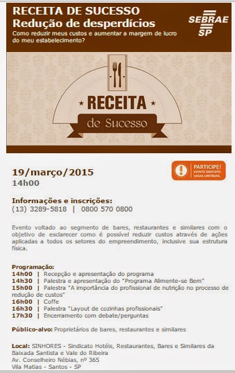 Evento Sebrae: Receita de Sucesso – Redução de Desperdícios: Como reduzir meus custos e aumentar a margem de lucro do meu estabelecimento?
