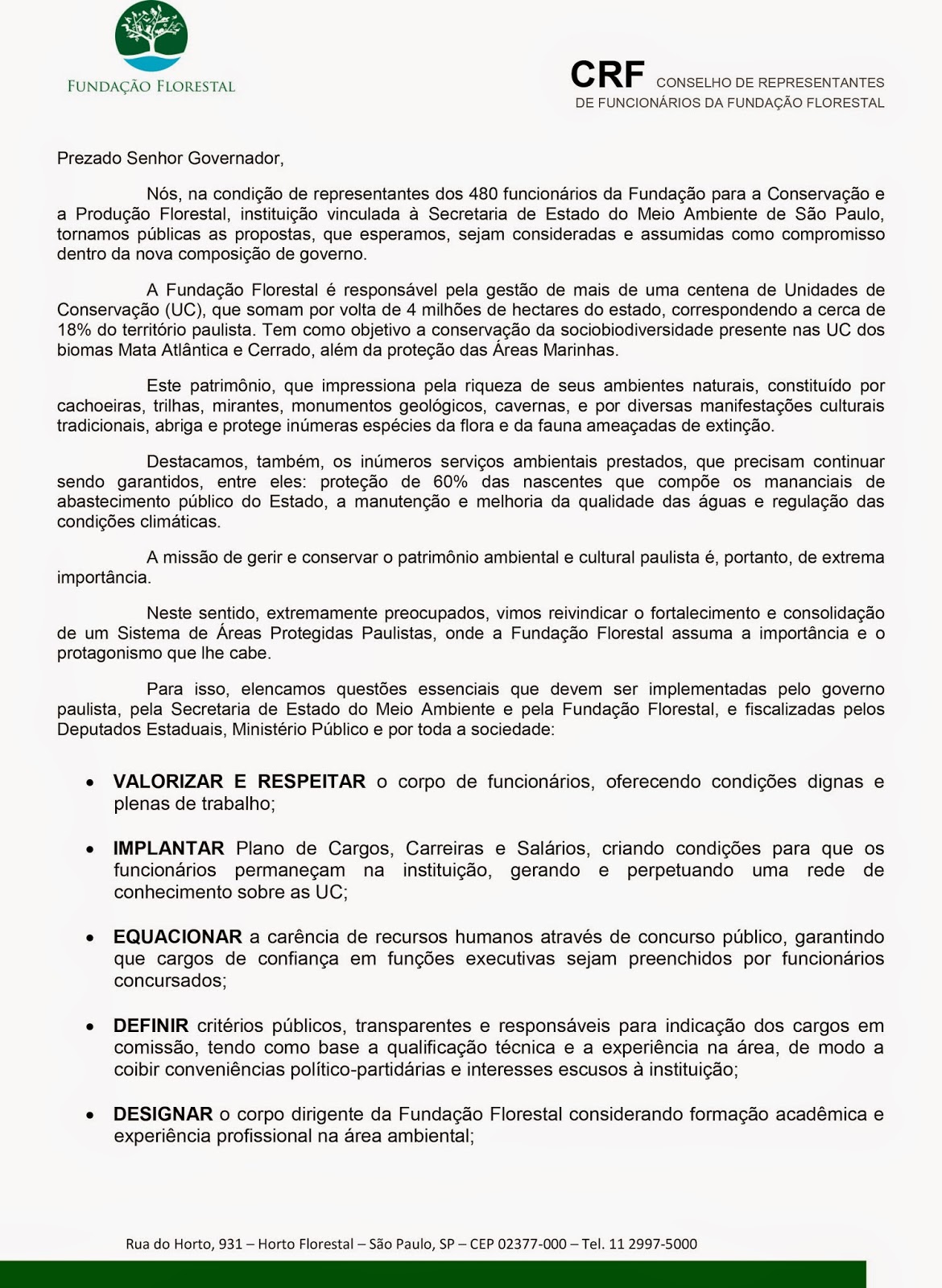 Carta ao Governador: Conselho de Representantes da Fundação Florestal
