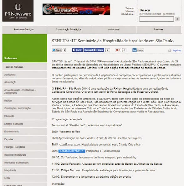 Renato Marchesini é Palestrante no Sehlipa 2014 – São Paulo SP (Matéria Canal Empresas S/A)