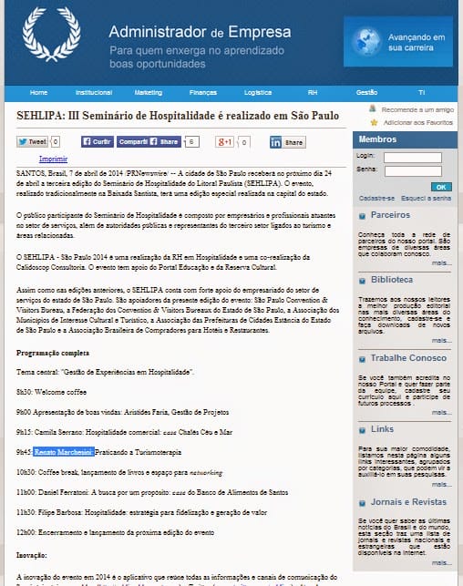 Renato Marchesini é Palestrante no Sehlipa 2014 – São Paulo SP (Matéria Portal Administrador de Empresas)