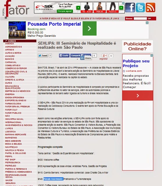 Renato Marchesini é Palestrante no Sehlipa 2014 – São Paulo SP (Matéria Portal Fator Brasil)
