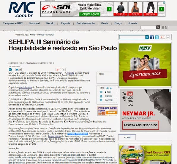 Renato Marchesini é Palestrante no Sehlipa 2014 – São Paulo SP (Matéria Portal RAC)