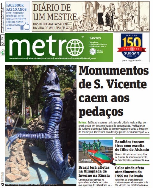 Monumentos de São Vicente caem aos pedaços. Jornal Metro Santos 04 fev 2014