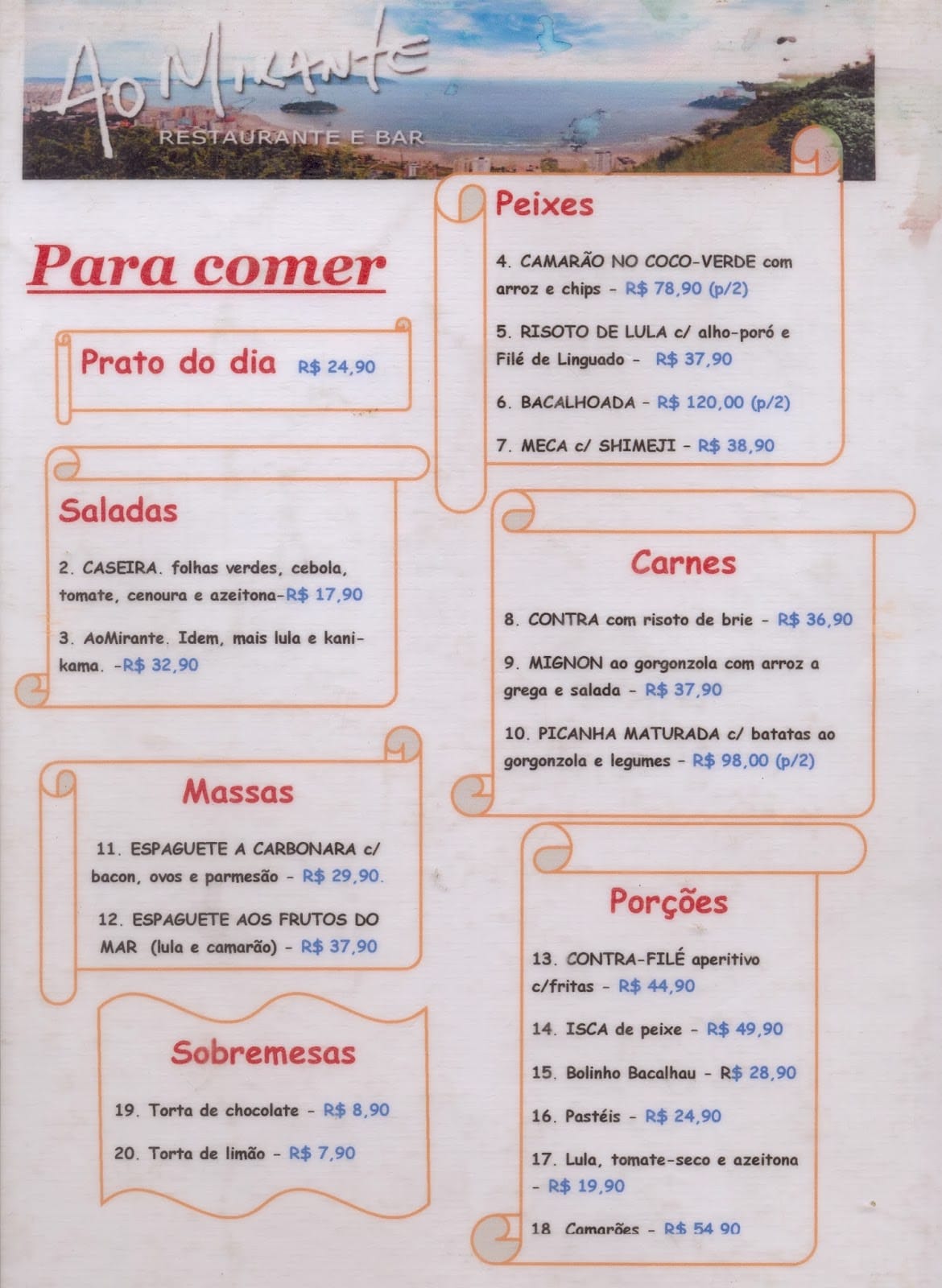 Conheça o Cardápio do Restaurante Ao Mirante em São Vicente SP