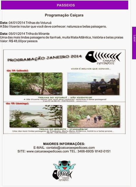 Maiores informações e reservas: contato@caicaraexpedicoes.com Tel: (13) 3466-6905,...