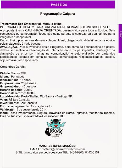 Maiores informações e reservas: contato@caicaraexpedicoes.com Tel: (13) 3466-6905,...