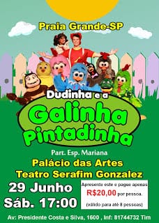 Cupom de desconto para espetáculo Dudinha e a Galinha Pintadinha em Praia Grande SP (29/07/2013)