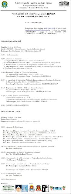 A UNIFESP – Campus Baixada Santista promove debate sobre “Desafios da Economia Solidária na Sociedade Brasileira” no dia 07/06/13.