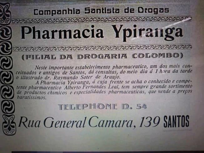 Anúncio Jornal Antigo Santos SP: Pharmacia Ypiranga