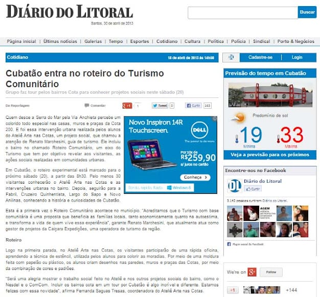 Matéria Jornal do Litoral 18/04/2013: Cubatão entra no roteiro do Turismo Comunitário com a Renato Marchesini
