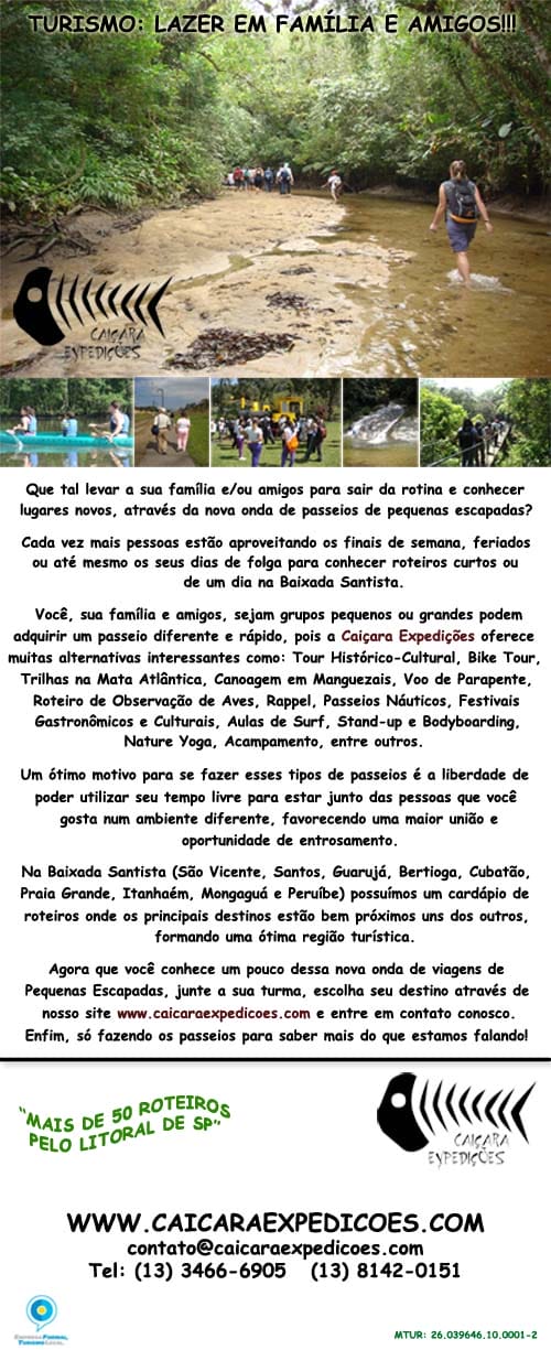 Maiores informações e reservas: contato@caicaraexpedicoes.com Tel: (13) 3466-6905,...