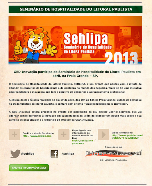 SEHLIPA 2013 – Seminário de Hospitalidade do Litoral Paulista – O tema central do evento é “Empreendedorismo & Inovação”