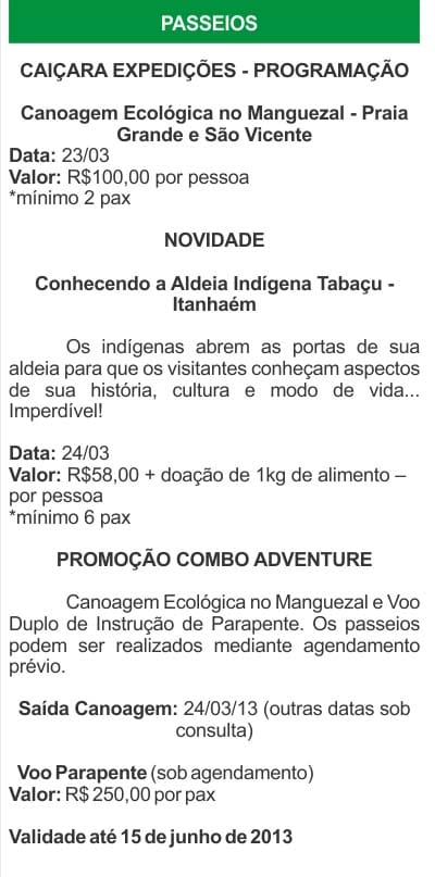 Maiores informações e reservas: contato@caicaraexpedicoes.com Tel: (13) 3466-6905,...