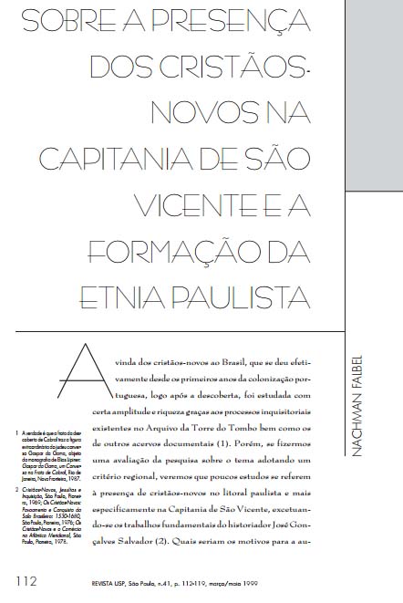 Artigo Revista USP: Sobre a Presença dos Cristãos Novos na Capitania de São Vicente e a Formação da Etnia Paulista