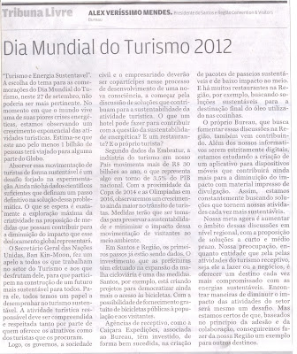 Jornal A Tribuna – Dia Mundial do Turismo 2012 e a Baixada Santista