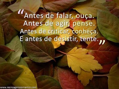 “Antes de falar, ouça. Antes de agir, pense. Antes de criticar, conheça. E antes de desistir, tente.”