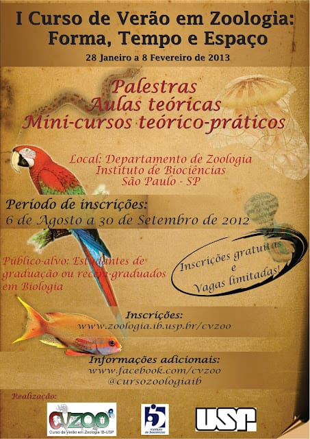 Inscrição Gratuita – 1º Curso de Verão em Zoologia – Departamento de Zoologia / Instituto de Biociência – USP