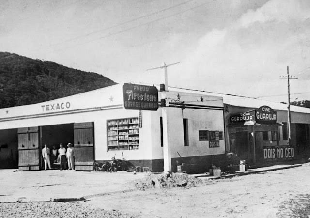 Foto Antiga Guarujá SP: Cine Guarujá e Posto Texaco (s.d).