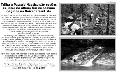 Clipping: Trilha e Passeio Náutico são opções de lazer no último fim de semana de julho na Baixada Santista – Jornal Tema