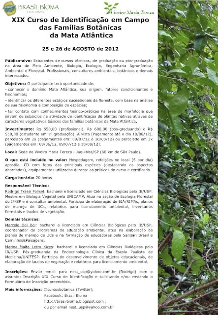 Cursos de Botânica – Indentificação e Caracterização da Flora