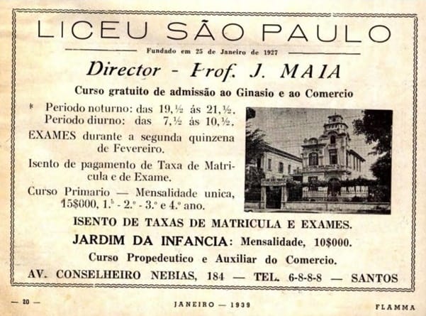 Propaganda Antiga Santos SP: Colégio Liceu São Paulo