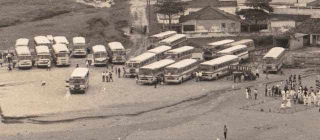 Foto Antiga Parada de Ônibus Praia Grande SP: Entre a Mirim e Caiçara no final dos anos 60