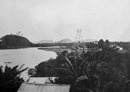 FOTO ANTIGA: Canal de Bertioga, Linhão de Energia da Usina de Itatinga em Monte Cabrão Santos SP (1915).