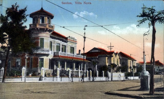 Foto Antiga Santos SP: Palacete da Vila Nova, Conselheiro Nébias, por volta de 1910.