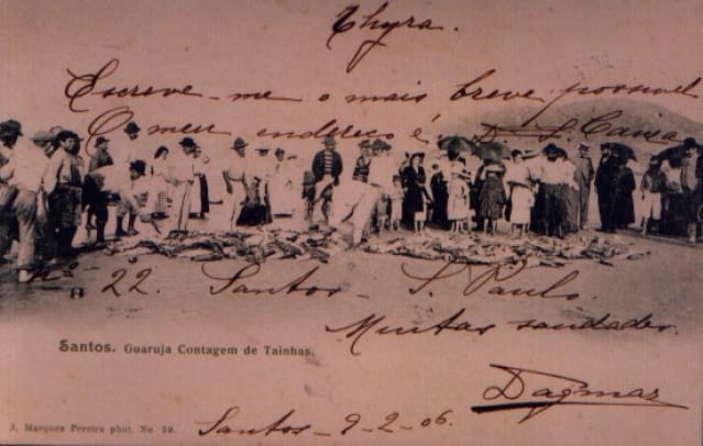 Cartão Postal – Foto Antiga Guarujá SP – Contagem de Tainhas (Pescadores Caiçaras)