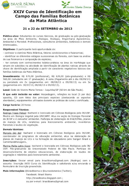 XIII Curso de Identificação em Campo – Curso de Botânica Mata Atlântica