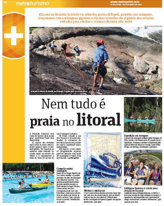 Lazer: Baixada Santista não é só Praias – Metro Jornal 14 jan 2011 – Com Renato Marc hesini é sair da Rotina