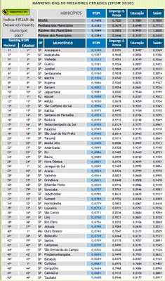 Ranking das Melhores Cidades Brasileiras 2010 pelo Índice Firjan de Desenvolvimento Municipal (IFDM)
