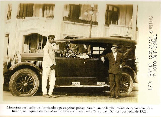 FOTO ANTIGA SANTOS Pneu furado, Rua Marcilio Dias com Presidente Wilson – Foto Postal 1925
