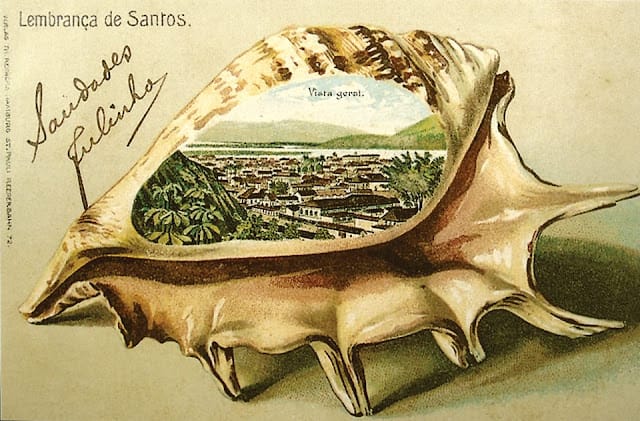 Foto Postal Antigo Santos SP: (1915) Praia de...