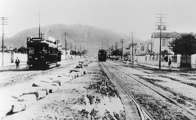 FOTO ANTIGA: Santos SP – Avenida Ana Costa no início do século 20. E os primeiros bondes elétricos