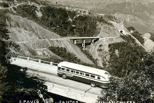 FOTO ANTIGA: Descendo a Serra do Mar rumo à Santos – SP – Via Anchieta em 1954.