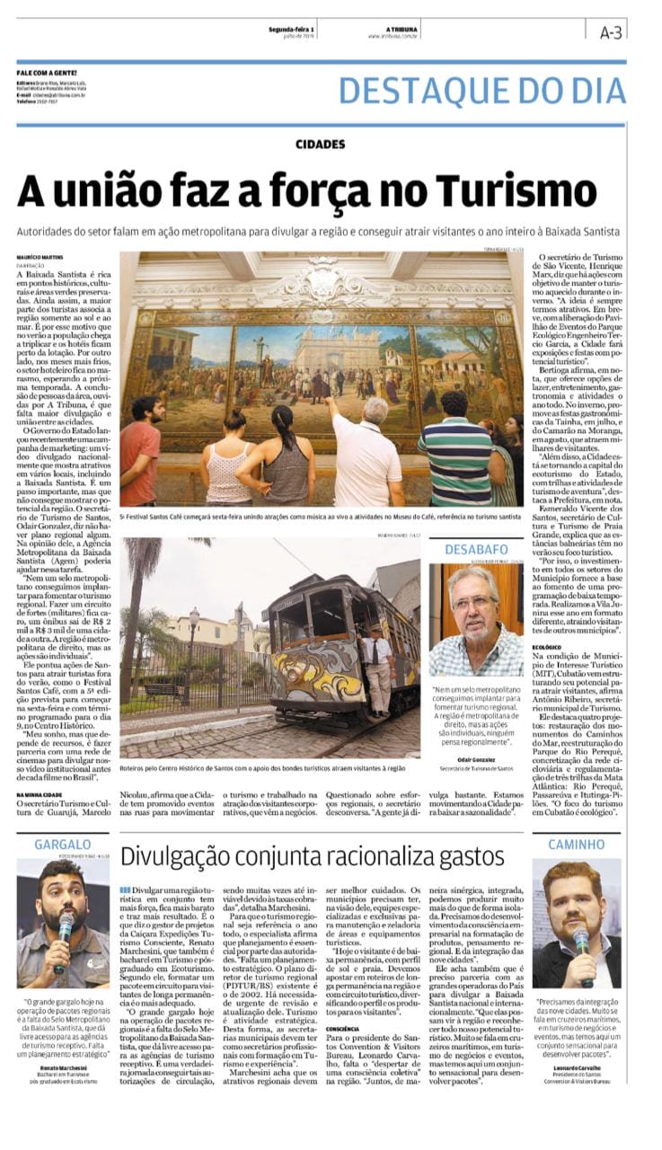A União faz a Força no Turismo / Matéria Jornal da Tribuna