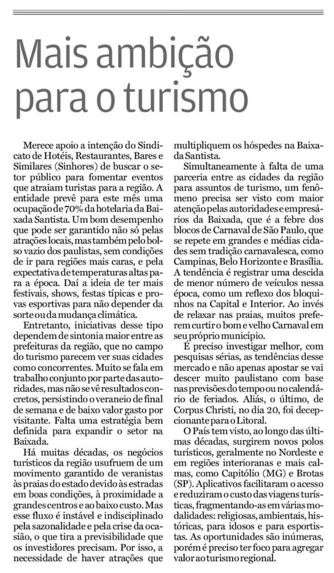 Jornal A Tribuna: Marketing, para alavancar o Turismo na Baixada Santista