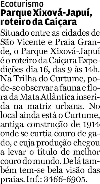 Ecoturismo na Baixada Santista: Parque Xixová-Japuí, roteiro da R9 TURISMO