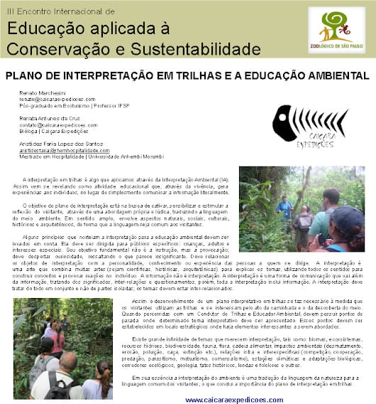 Plano de Interpretação em Trilhas e a Educação Ambiental